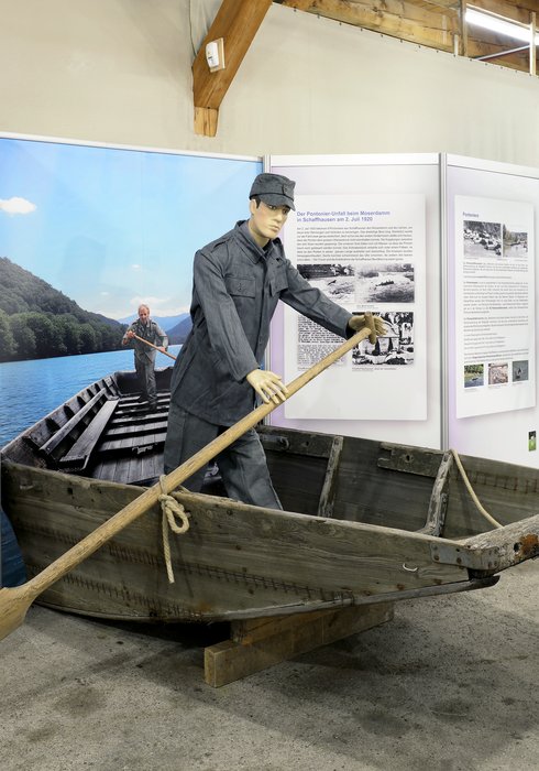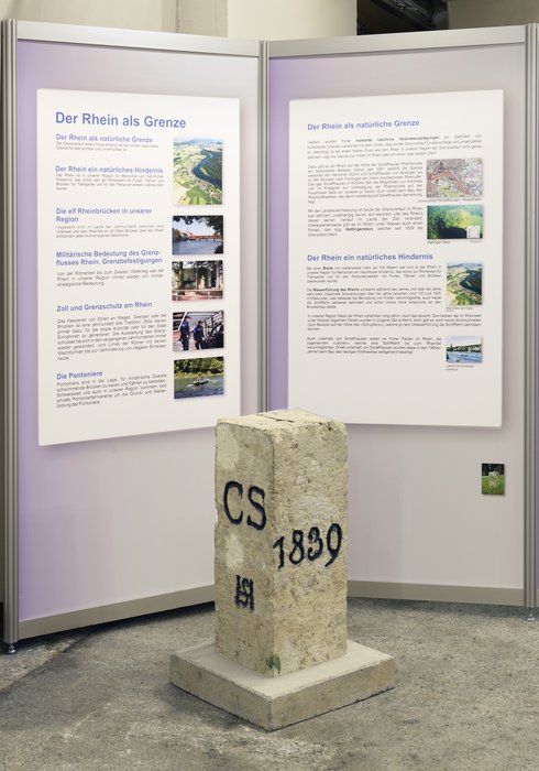 Der Rhein hatte als natürliches Hindernis während Jahrhunderten, von der Römerzeit bis heute, eine wichtige Funktion als Grenze. Ein wichtiges Thema sind dabei kriegerische Auseinandersetzungen entlang dieses Grenzflusses. Spannend sind aber auch die vielfältigen Verbindungen über den Rhein hinweg (z.B. Brücken). Ein weiteres interessantes Kapitel ist die Sicherung der Grenze durch Zoll, Polizei und Armee. Ein spezieller Aspekt ist die traditionelle Rolle der Pontoniere und der Pontoniervereine.