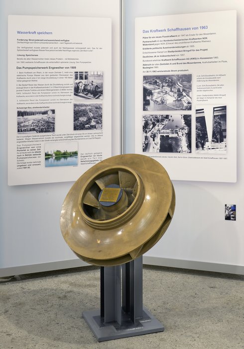 Wichtig für unsere Region ist die Nutzung der Wasserkraft zur Energie-Gewinnung vom Mittelalter bis heute. Dazu gehören frühere Formen der gewerblichen Nutzung (bis ca. 1860), die mechanische Kraftübertragung als wesentliche Basis für die Industrialisierung der Stadt Schaffhausen (Moserdamm von 1866), die Umsetzung der Wasserkraft in elektrischen Strom oder die Speicherung der Wasserkraft (Pumpspeicher Engeweiher). Interessant sind auch Hinweise zu Pionieren der Energiegewinnung. Zudem wird auf aktuelle technische und politische Fragen zur künftigen Nutzung der Wasserkraft am Rhein hingewiesen.