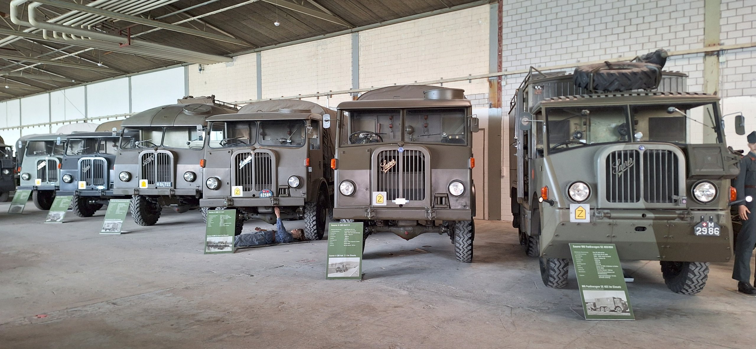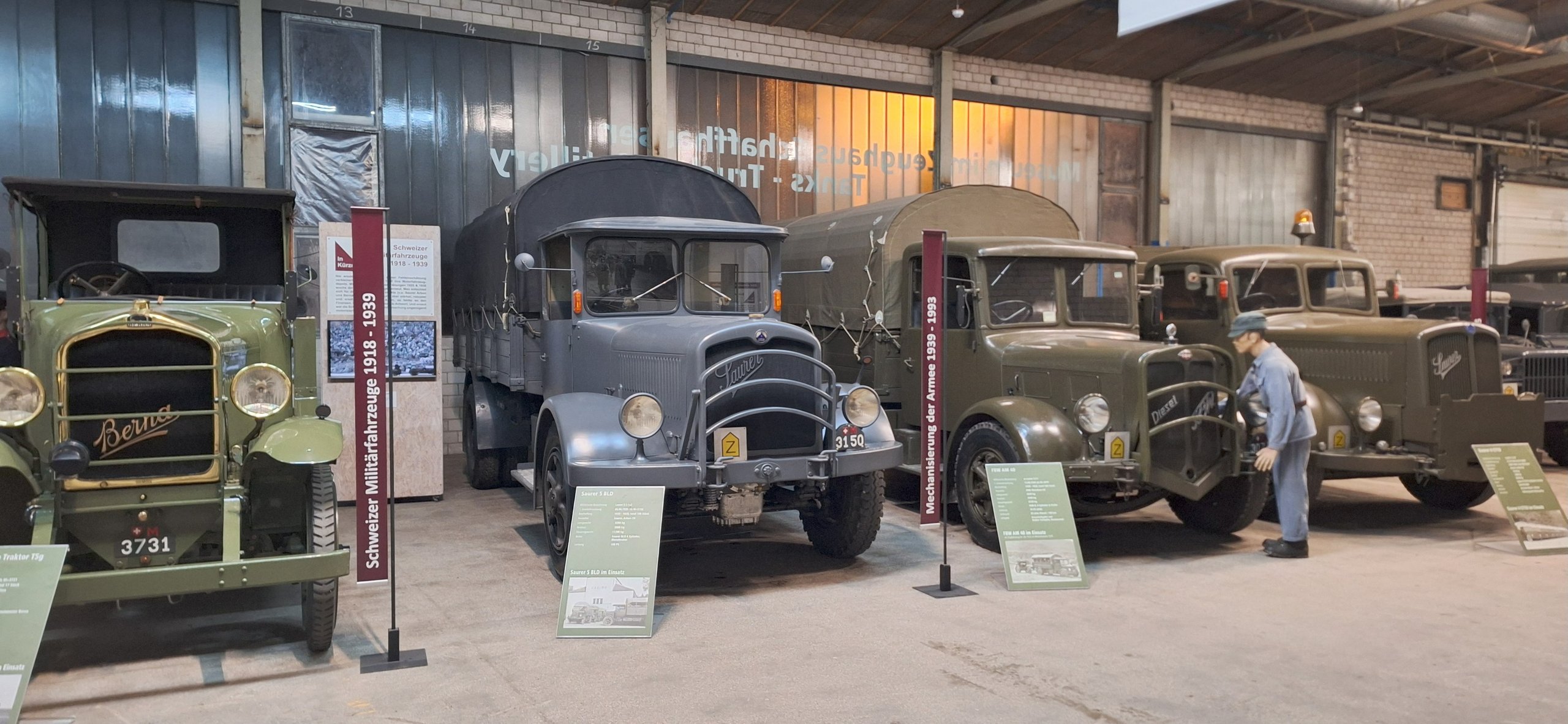 Die 50 ausgestellten Motorfahrzeuge verkörpern, thematisch gegliedert, die Beschaffung und Verwendung von Motorfahrzeugen in der Schweizer Armee. Sie dokumentieren gleichzeitig ein wichtiges Kapitel der schweizerischen Industrie- und Technikgeschichte: den Aufstieg, die Innovationskraft und den Untergang der einheimischen Motorfahrzeugindustrie. Die Fahrzeuge sind alle betriebsbereit und stammen weitgehend aus den eigenen Beständen des Museums.